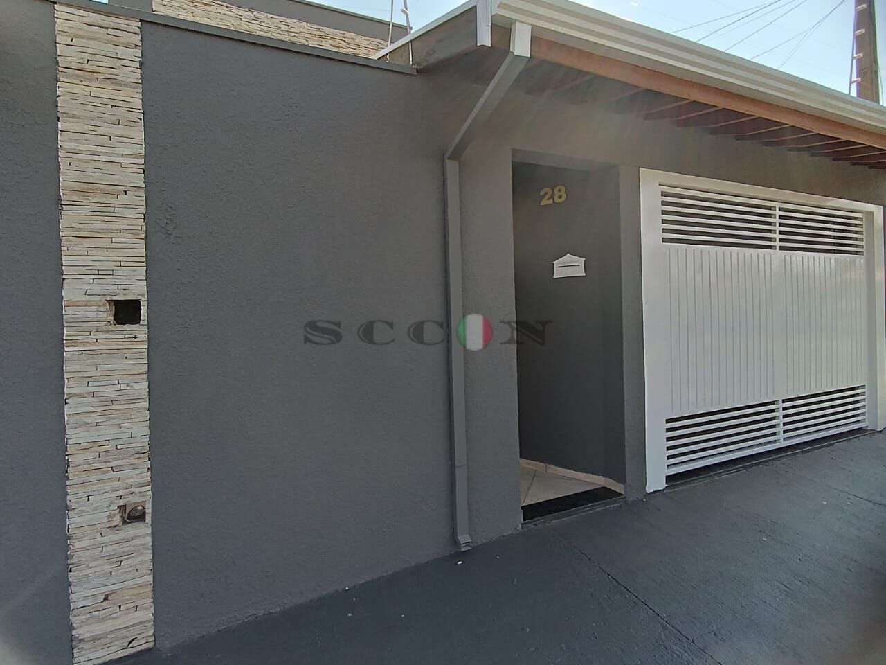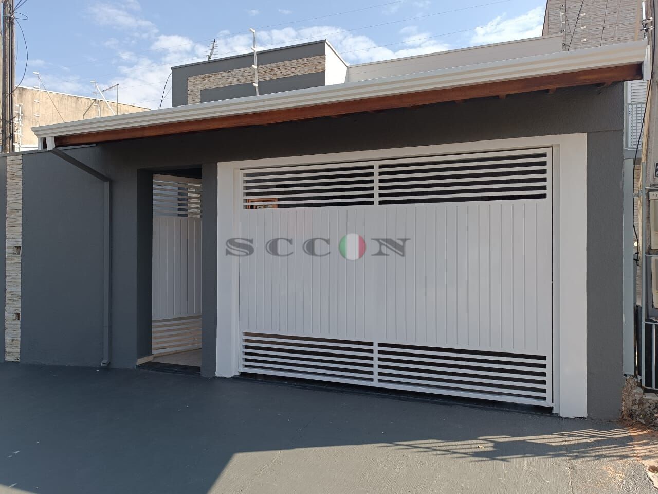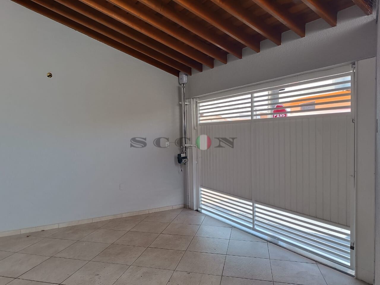 Garagem coberta.