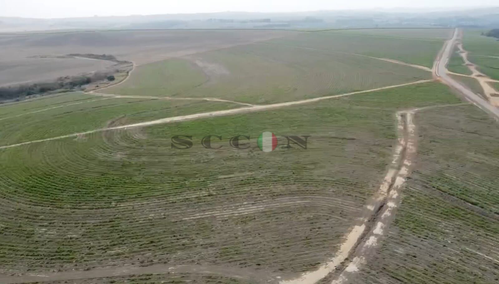 O asfalto corta a fazenda em uma extensão de 2 km !!